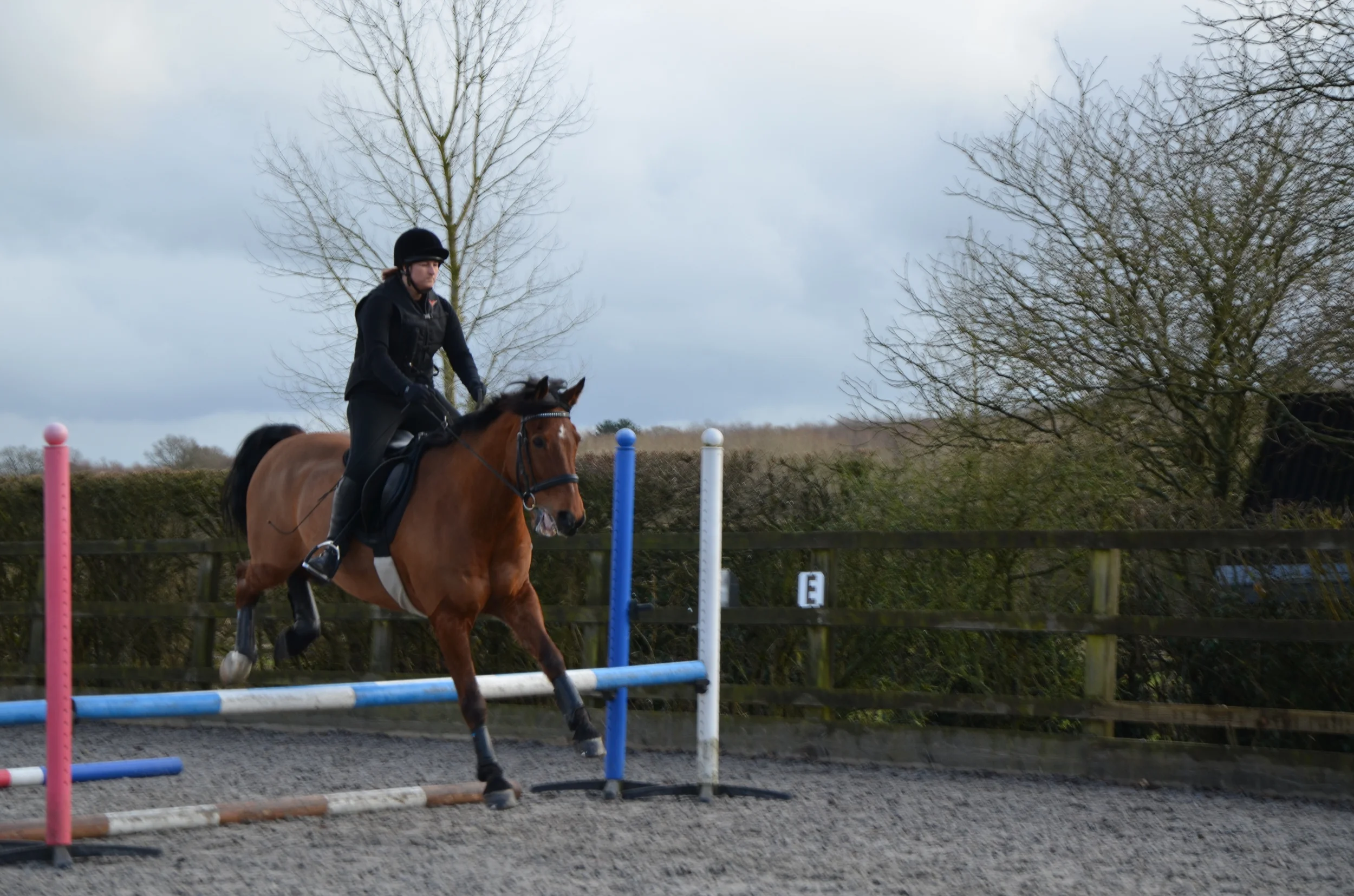 In 2012, I had a week off at my new yard and it was cold but sunny. I decided the hacking alone needed to be conquered so started taking JJ out in hand every day. At first he was just as nervous as if I was on board, but the more the week went on he was more confident (a bit bored too probably but that’s a good thing!) and we started out in hand and I jumped on for the ride home which suited J because at least he knew where he was going and so was more happy and a bit more chilled out.